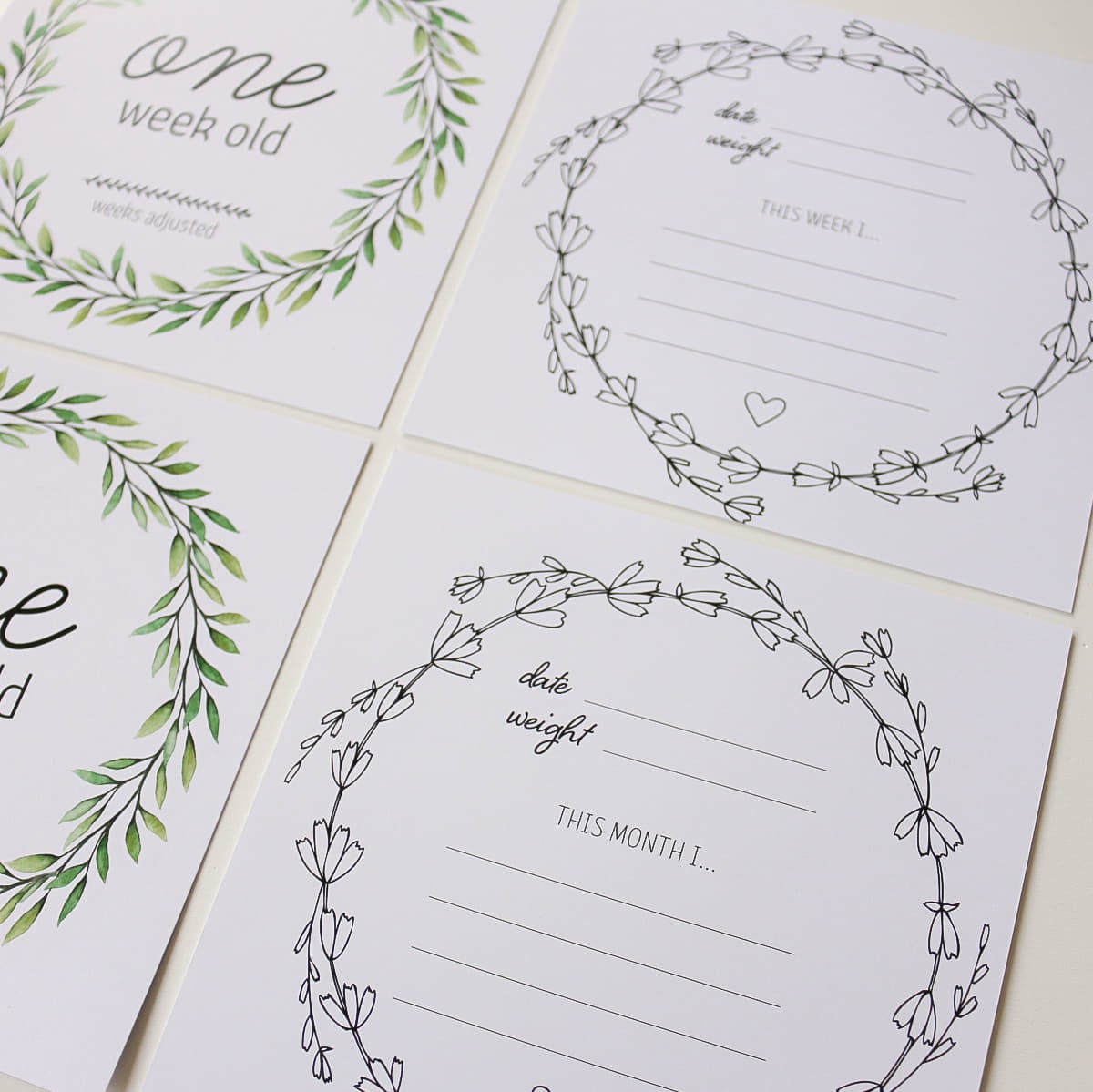 'I'm Growing!' (Eucalyptus Wreath) Age Premature Baby Milestone Cards